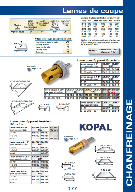 Lames interchangeables angles de coupe 0°, 14°, 20° et 25° HSS, HSS Tin et Carbure.